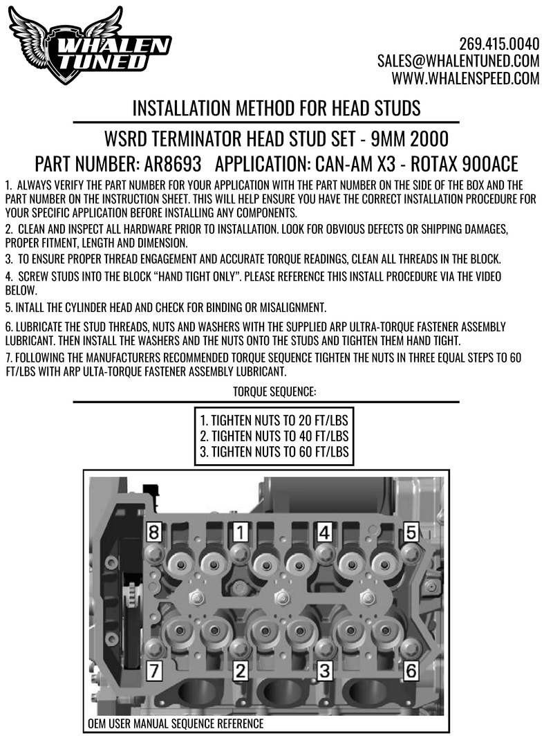 WSRD Terminator Head Stud Kit | Can-Am X3 & Ski-Doo (Rated to 400HP)
